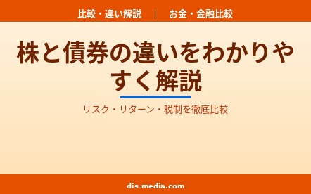 お金・金融比較株式と債券の違いをリスク・リターン・仕組み・税制など10項目で徹底比較。投資初心者でもわかるように図解付きで解説し、あなたに合った投資スタイルの選び方をお伝えします。
