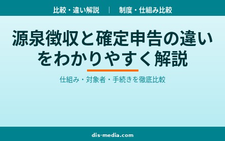 制度・仕組み比較源泉徴収と確定申告の違いを仕組み・対象者・手続きなど8項目で徹底比較。会社員・副業ワーカー・フリーランスそれぞれの立場で何が必要か、2026年最新の制度情報とともに解説します。