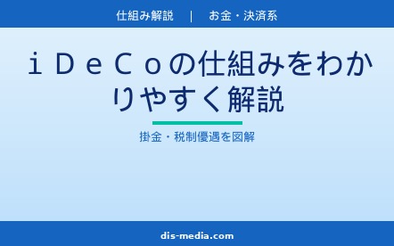 お金・決済系iDeCo(個人型確定拠出年金)の仕組みを掛金上限・3つの税制優遇・運用商品の選び方から2026年12月の制度改正まで徹底解説。加入者380万人突破の人気制度を図解でわかりやすく説明します。