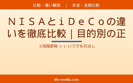 お金・金融比較NISAとiDeCoの違いを比較表・フロー図・生活シーン別で徹底解説。2026年12月施行のiDeCo大改正情報も踏まえ、あなたの状況に合った「結局どちらを優先すべきか」がわかります。