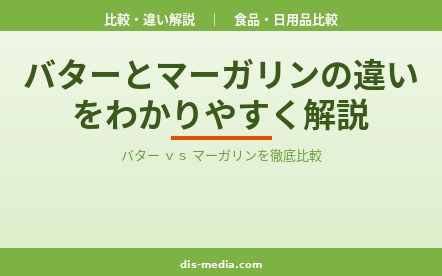 比較・違い解説バターとマーガリンの違いを原料・栄養成分・トランス脂肪酸・価格・JAS規格まで徹底比較。「マーガリンは体に悪い」は本当か?料理やお菓子作りでの使い分け方まで、図解付きでわかりやすく解説します。