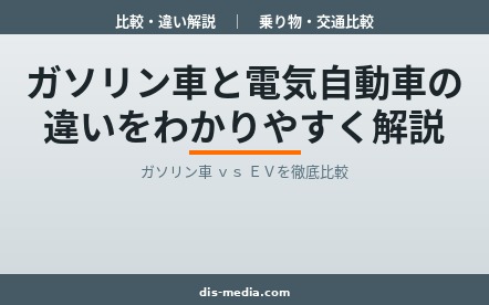 乗り物・交通比較ガソリン車と電気自動車(EV)の違いを図解付きで徹底比較。購入価格・燃料費・10年間の総コスト、走行性能、充電インフラ、補助金制度、環境負荷まで、あなたに合った1台を選ぶための判断基準を解説します。