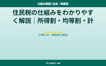 仕組み解説住民税の仕組みを所得割・均等割の計算方法からわかりやすく解説。いつ・いくら払うのか、前年度課税の落とし穴、iDeCoやふるさと納税を使った節税策、よくある誤解まで徹底ガイドします。