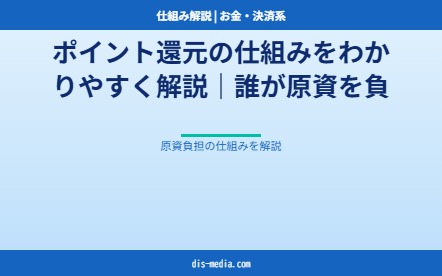 お金・決済系ポイント還元の仕組みを「誰が原資を負担するか」という視点で解説。消費者・店舗・ポイント事業者の三者関係、還元率の決まり方、有効期限の管理、賢いポイ活の判断基準まで詳しく紹介します。