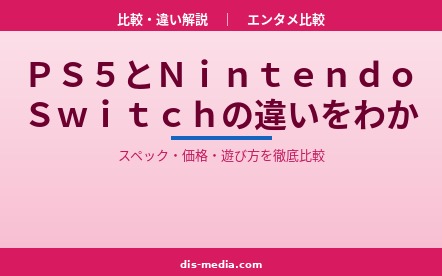 エンタメ比較PS5とNintendo Switchはどっちを買うべき?スペック・価格・ソフトラインナップ・遊び方の違いを徹底比較し、あなたのライフスタイルに合ったゲーム機の選び方をわかりやすく解説します。Switch 2の最新情報も網羅。