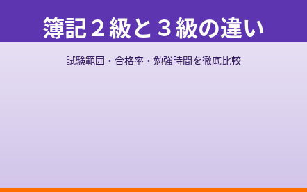 教育・資格比較「簿記2級と3級、どう違うのか?」これは、簿記検定の受験を検討している人なら誰もが持つ疑問です。実は、この2つのレベルは出題範囲・試験時間・難易度・必要勉強時間がまったく異なります。自分のキャリアに合わせて、正しく選択す...