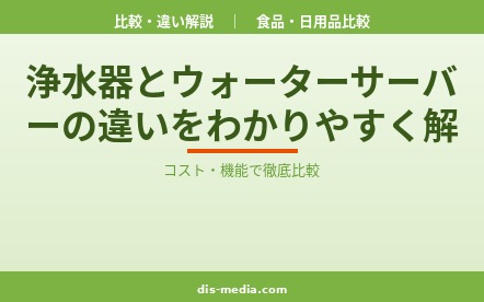 比較・違い解説浄水器とウォーターサーバーはどちらがお得?初期費用・月額コスト・水温機能・設置の手軽さ・メンテナンスの5軸で徹底比較。蛇口直結型・据え置き型・宅配型・浄水型サーバーの違いや、一人暮らし・子育て世帯の選び方まで図解付きでわかりやすく解説します。